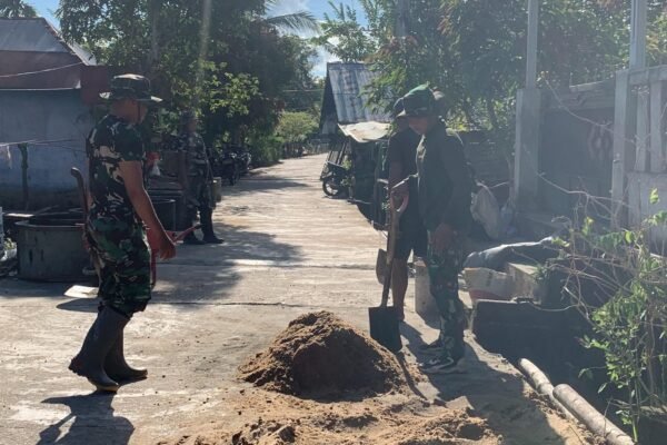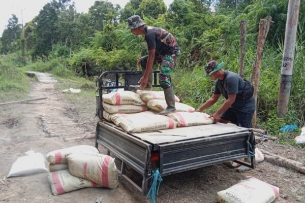 Tanpa Mesin, Satgas TMMD dan Warga Tetap Semangat Aduk Semen di Desa Talio