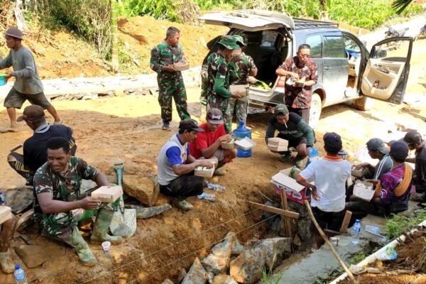 Kendari — Personel Satgas TMMD ke-127 dari Kodim 1417/Kendari terus mempererat hubungan sosial dengan masyarakat melalui kegiatan komunikasi sosial (Komsos) di Kelurahan Sambuli, Kecamatan Nambo, Sabtu (14/2). Di sela-sela kesibukan pembangunan infrastruktur, salah satu personel Satgas TMMD, Pratu Aditya Ramadan, meluangkan waktu untuk berbincang santai dengan warga setempat. Suasana hangat terlihat saat prajurit TNI dan…