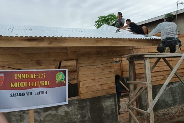 KENDARI – Komitmen menghadirkan fasilitas sanitasi yang layak kembali ditunjukkan Satgas TMMD ke-127 Kodim 1417/Kendari melalui pengerjaan pengacian dinding MCK di Kelurahan Sambuli, Rabu (4/3). Tahap ini tidak hanya memberikan nilai estetika pada bangunan, tetapi juga berfungsi menutup pori-pori dinding agar lebih kedap air dan tahan terhadap kelembapan. Keahlian dan ketelitian para prajurit terlihat saat…