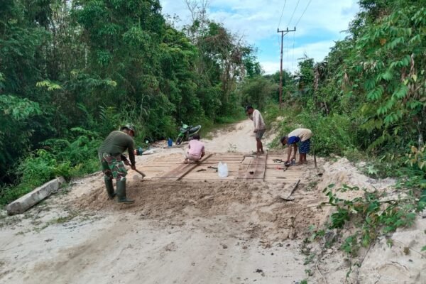 Karau Kuala, 24 Mei 2025 – Dalam rangka mendukung kelancaran akses jalan desa, Satgas TMMD ke-120 Kodim 1012/Buntok melaksanakan pekerjaan penguatan jembatan di Desa Talio, Kecamatan Karau Kuala, Kabupaten Barito Selatan. Jembatan yang sebelumnya rawan ambruk saat dilewati kendaraan kini mulai dikokohkan dengan pemasangan balok beton, besi tulangan, serta penguatan pondasi sisi kanan dan kiri….
