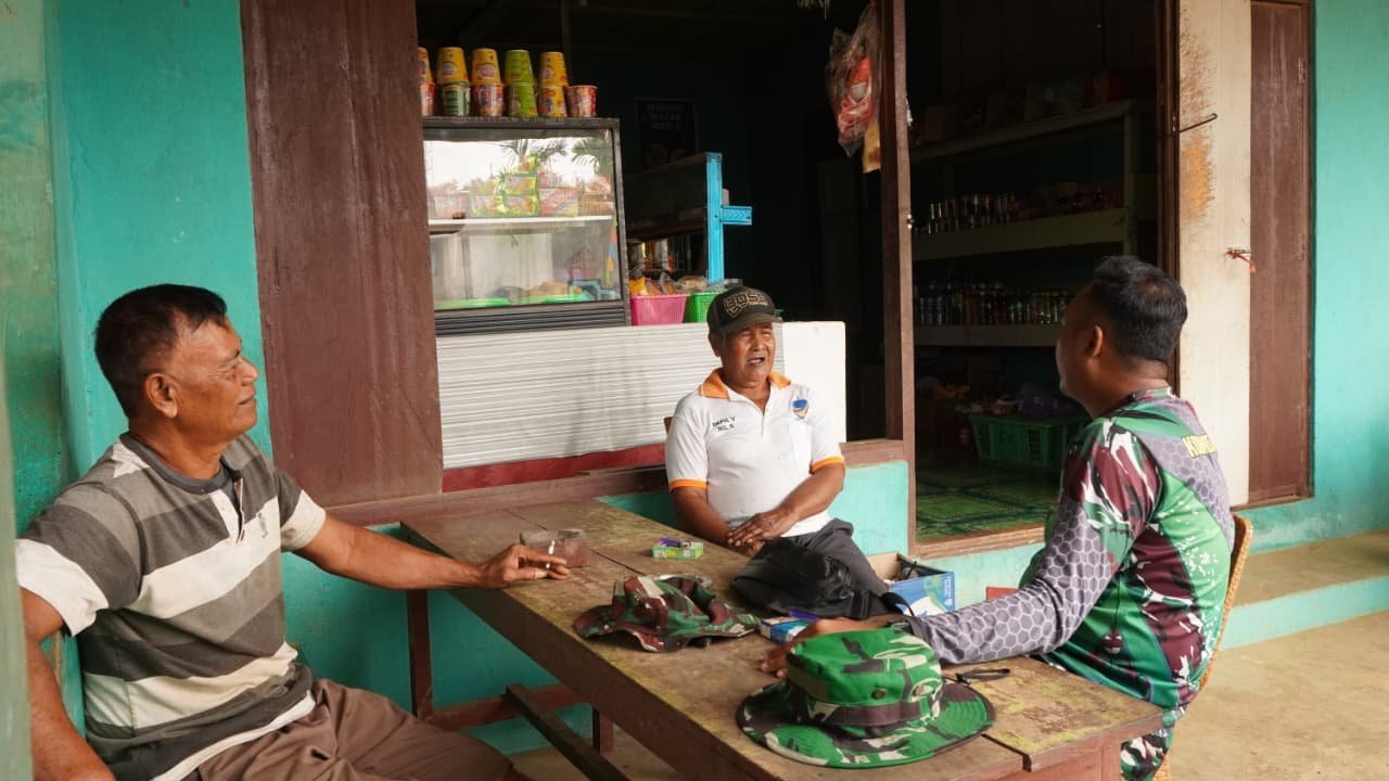 Dalam suasana santai, anggota Satgas terlihat berbincang bersama masyarakat mengenai kondisi sosial, keamanan lingkungan, hingga harapan warga terhadap keberlanjutan pembangunan desa. Interaksi tersebut berlangsung hangat dan penuh kekeluargaan.