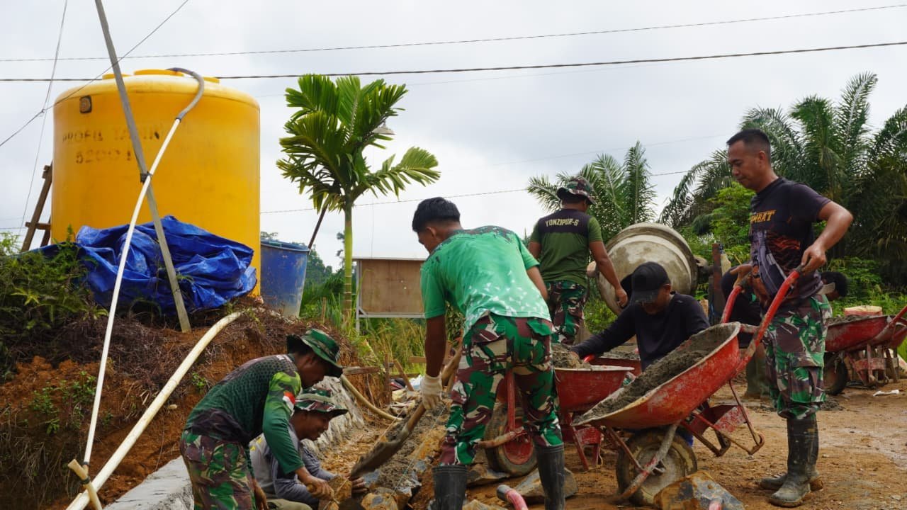 Dalam kegiatan tersebut, personel Satgas dan warga saling bekerja sama mulai dari pengangkutan material hingga penyusunan siring jalan. Semangat kebersamaan yang terjalin menciptakan suasana kerja yang penuh kekompakan dan rasa tanggung jawab bersama.