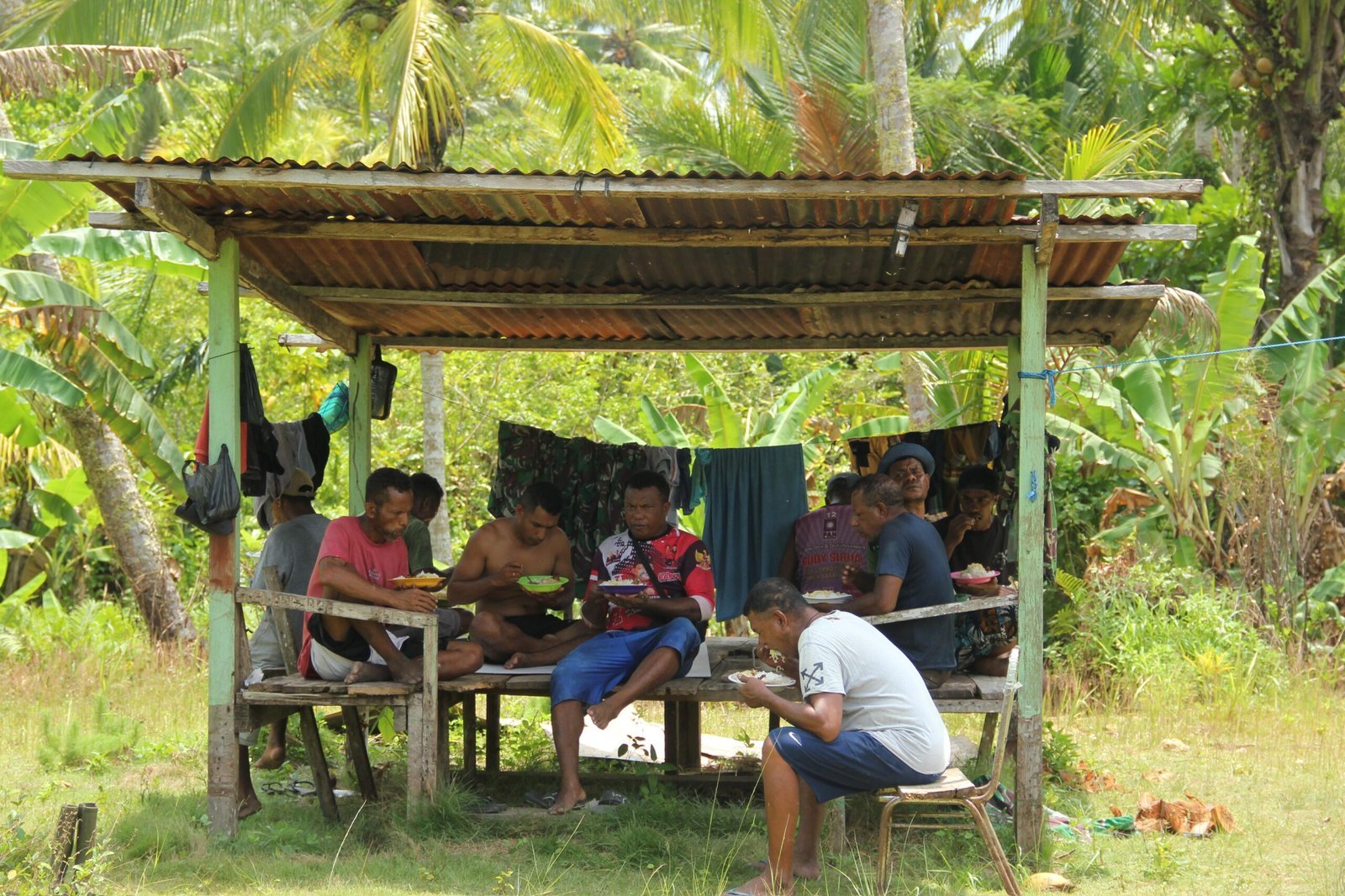 Dalam acara yang sederhana tetapi sarat makna ini, personel Satgas dan warga berkumpul untuk menikmati hidangan yang disiapkan secara gotong royong. Momen ini terlihat hangat, dipenuhi dengan canda tawa dan interaksi akrab antara prajurit TNI dan masyarakat.