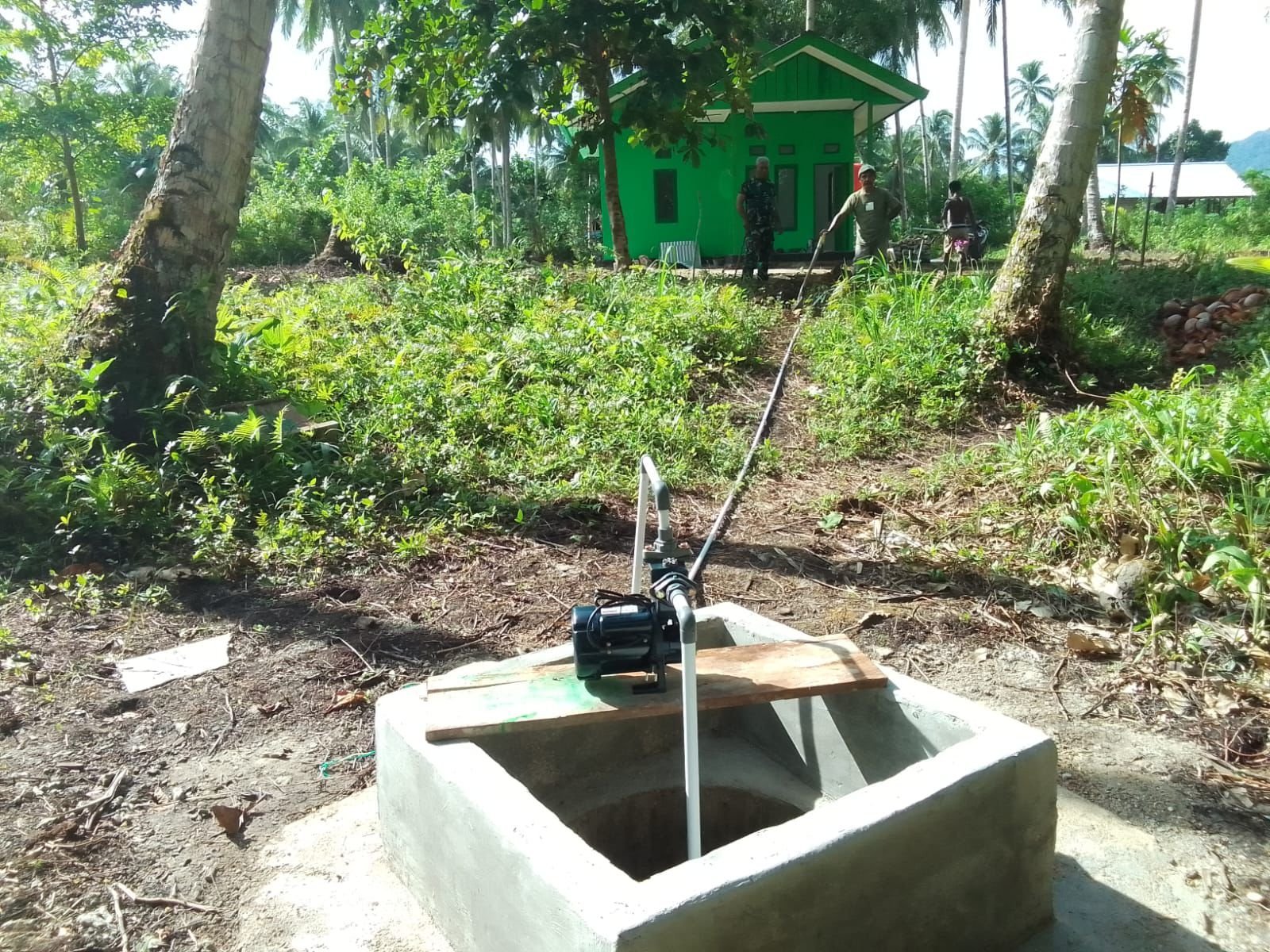 Pemasangan mesin air tersebut dilakukan pada sumur yang diperuntukkan bagi rumah milik Evelina Surawi yang menjadi salah satu penerima bantuan pembangunan rumah dalam program TMMD 127.