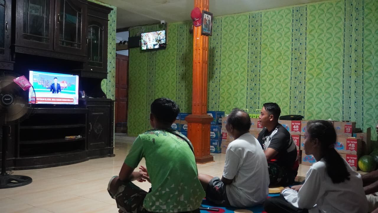 Kegiatan tersebut berlangsung di rumah Bapak Mesran yang menjadi tempat tinggal sementara anggota Satgas selama bertugas. Dalam suasana santai, prajurit dan keluarga tuan rumah duduk bersama menikmati tayangan televisi sambil berbincang ringan.