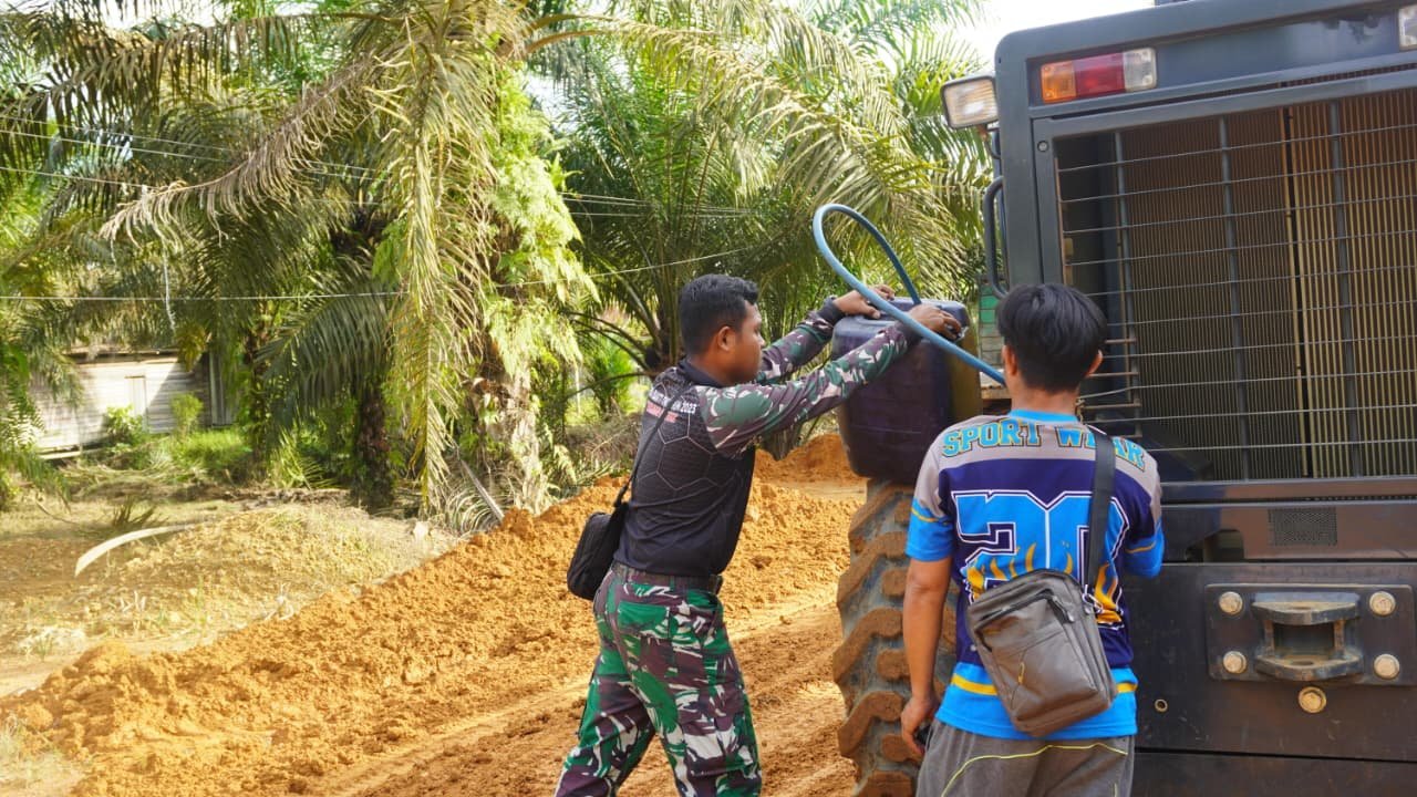 Satgas TMMD Reguler ke-127 Kodim 1015/Sampit Bantu Operator Isi BBM Alat Berat Demi Percepat Penimbunan Jalan