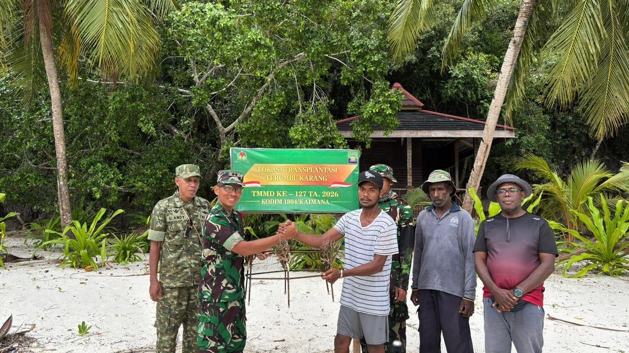 Salah satu kegiatan tersebut adalah transplantasi terumbu karang yang dilaksanakan di Pulau Sanus, wilayah Kampung Namatota, Distrik Kaimana, Kabupaten Kaimana, Jumat (06/03/2026).